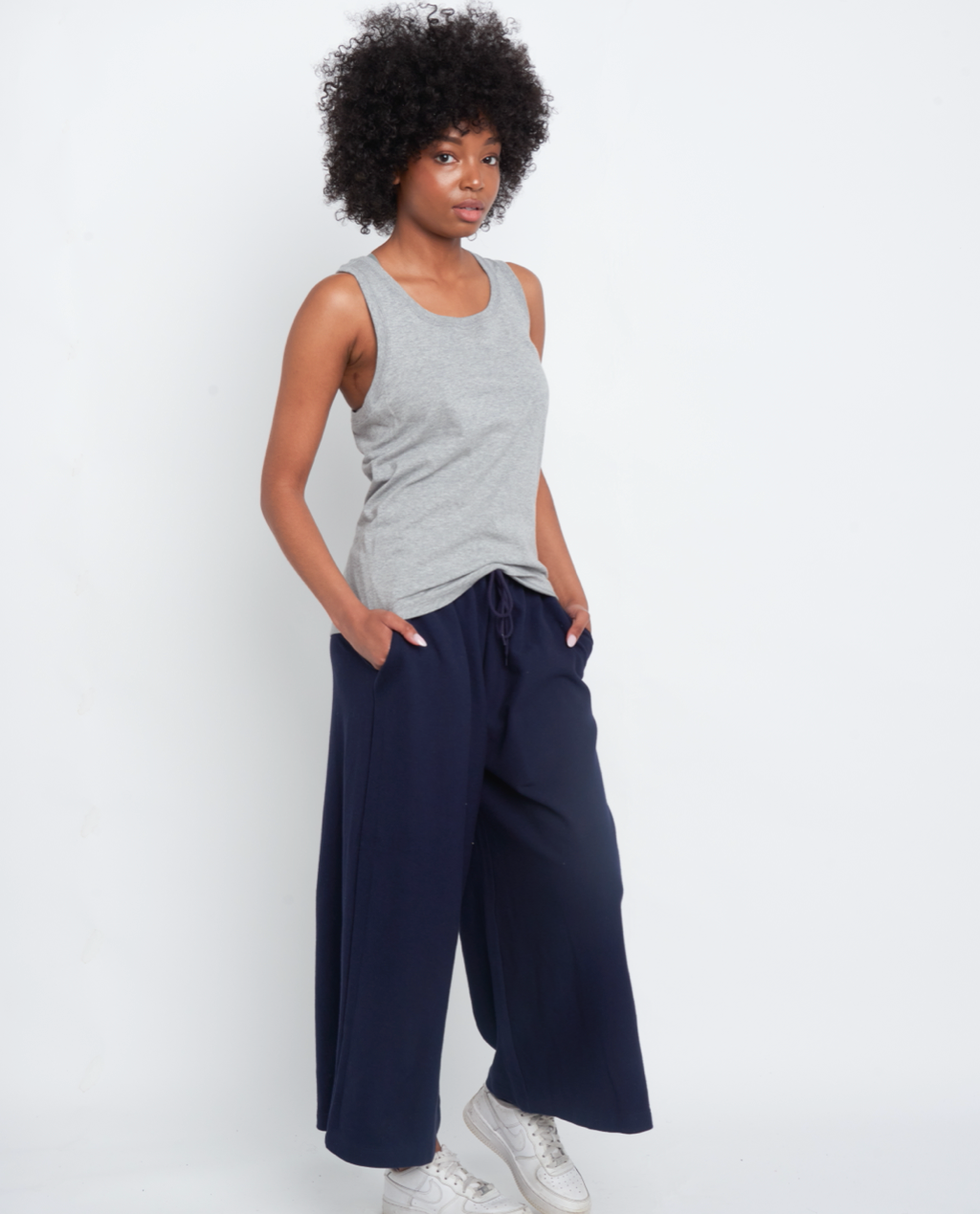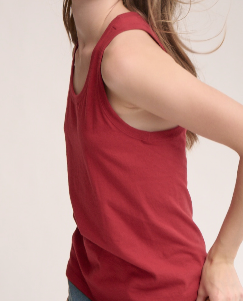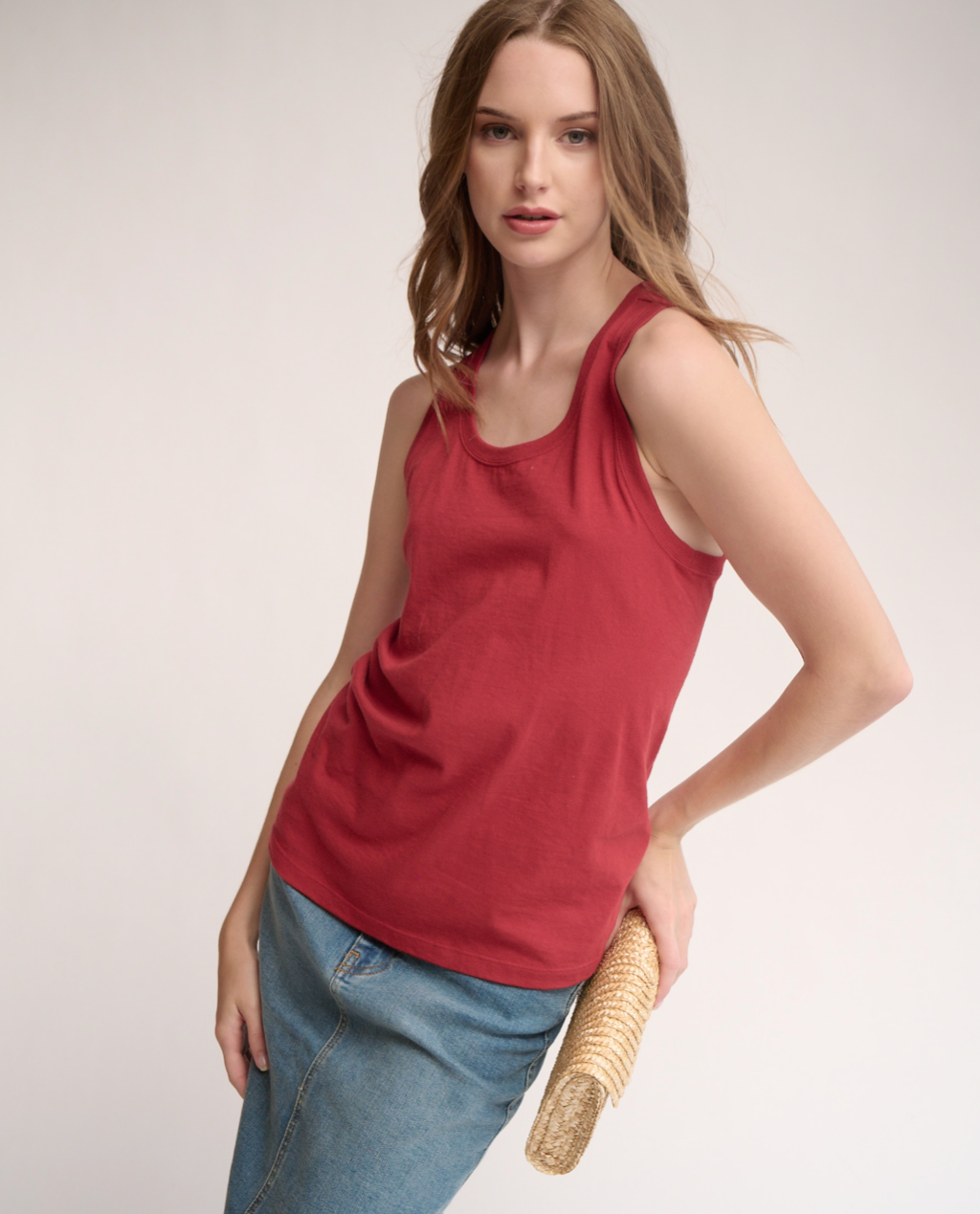 Racerback top, constructed from 100% cotton jersey - inside yoke made with upcycled striped tee and features upcycled denim heart appliqué.